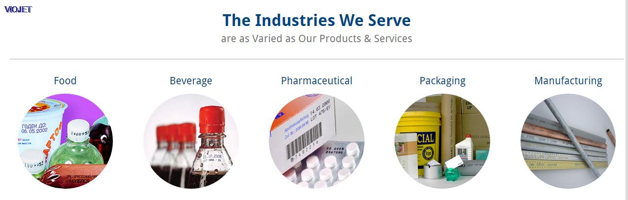 A: VIOJET inks are used in a wide variety of industries for many different applications, including the automotive, food, beverage, electronic, consumer products, wire cable, pharmaceutical Industries and so on.